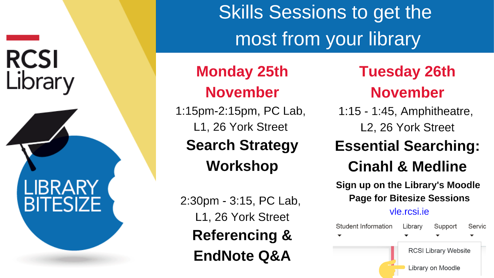 Lots of Library BiteSize sessions planned for the next couple of weeks: Students can sign up from Moodle here.